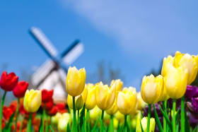 Efter morgenmaden på hotellet sætter vi os op i bussen og kører til byen Lisse, der i blomsterkredse en kendt for én eneste ting; blomsterparken Keukenhof, der er verdens største af sin slags. Her er et farveflor og en blomsterpragt, som er en sand fryd for øjet. Der bliver tid til at nyde det pragtfulde farveorgie med tusindvis af tulipaner fordelt på 800 forskellige sorter og andre forårsblomster samt lejlighed til at købe blomsterløg i den tilhørende butik.